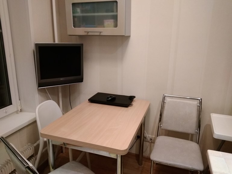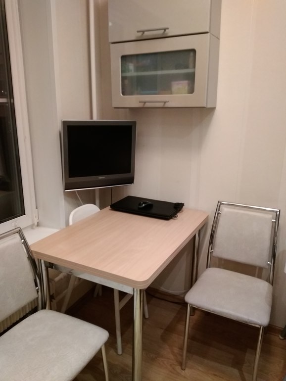 Последнее фото: стол отодвинут и слева один деть садится, а справа икеевский стульчик мелкого виден)) Почти в коридоре))