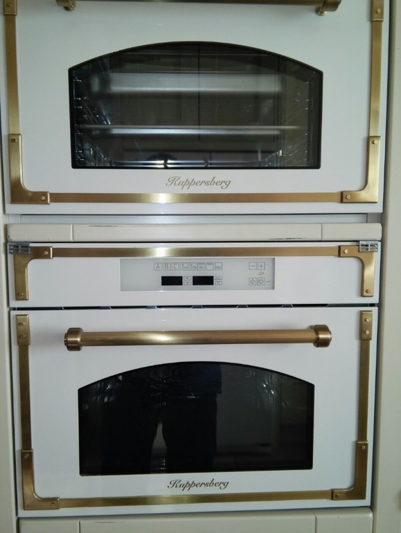 Все верно говорят, технику для такой кухни лучше брать классику, желательно, одной фабрики. Здесь очень важен внешний вид фасадов техники. Например: