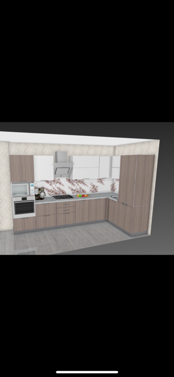 Прям моя))) у меня только зеркальная. Холодильник, 15 см стол (там выдвижную прока для бутылок) раковина, угол, рабочая поверхность 60 см, под ней поскдомойка, плита, стол 60(здесь Чайно-кофейная зона) и колонна с микроволновкой и духовкой. Мне норм. Я даже торты там пеку.