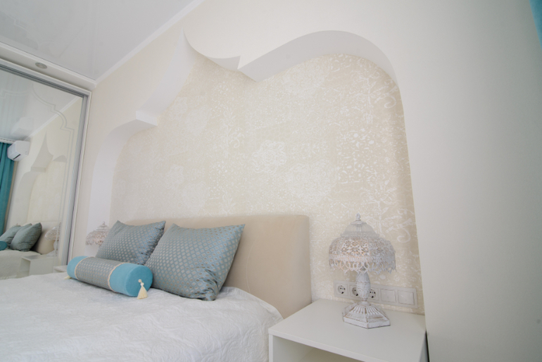 Интерьерное решение спальниРада презентовать вам работу нашей ученицы- дизайн квартиры с восточными нотками