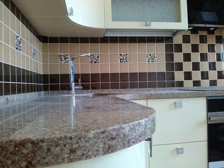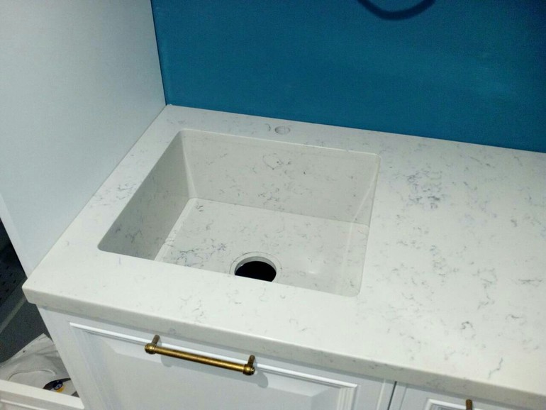 Также учтите, что у кварца стык будет намного заметнее, чем у иск. камня. Я пока еще идеального стыка не видела (смотрела на выставочных образцах в салонах кухонь) у кварца, поэтому отказалась от этого материала.