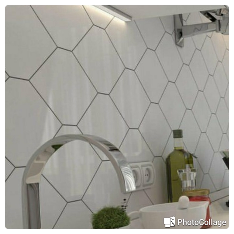 Тогда бы сделала белую, можно с вкраплениями (как на 3 варианте). Главное, чтобы белый цвет относительно совпадал. Прям приложить кусок плитки к образцу столешницы.