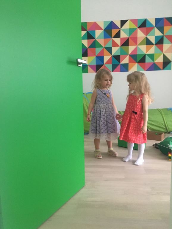 Да, фотообои Дивино Декор Яркие ромбы. Бархатистые на ощупь, насыщенные цвета - маленькая хозяйка комнаты осталась в восторге. Хотя бюджет был сильно ограничен, заказчице хотелось добиться вау-эффекта, и кажется нам это удалось)