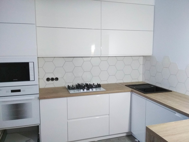 Но когда выложили фартук шестигранником Керама Марацци (на стенде он казался просто белоснежным), и стены покрыли финальной шпаклевкой, я поняла - белым стенам не бывать(( Плитка с белоснежной шпаклевкой выглядела серой. Ну ладно, тогда покрасим стены в серый!!! Несколько вечеров мы выбирали по палитре цветов Капарола серый оттенок, от "фу, бежевый какой-то" до "фуу, зеленит!!". И так и этак прикладывая белый лист бумаги. И тут я увидела его, он показался идеальным.