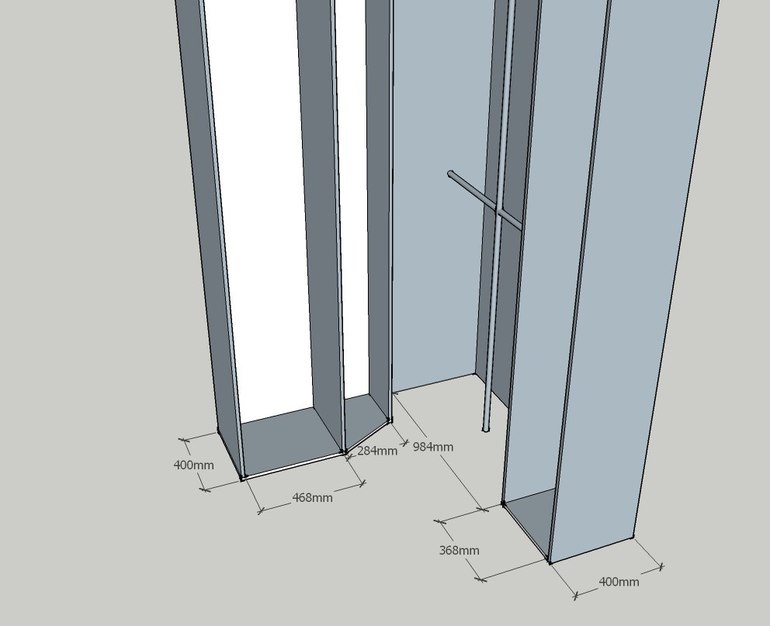 Вопросы и ответыИмеем угол для шкафа, примерно 1,40 на 1,60.... Примерно потому что стены то больше, и под шкаф могу выделить -+ ...энное количество см.