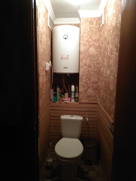 Я бы скрыла все эти трубы, меня напрягает такой вид, как коммуналка. Нам тоже надо делать ремонт, но у нас все трубы за унитазом и там дверка открывается. А мне так полочек не хватает в туалете