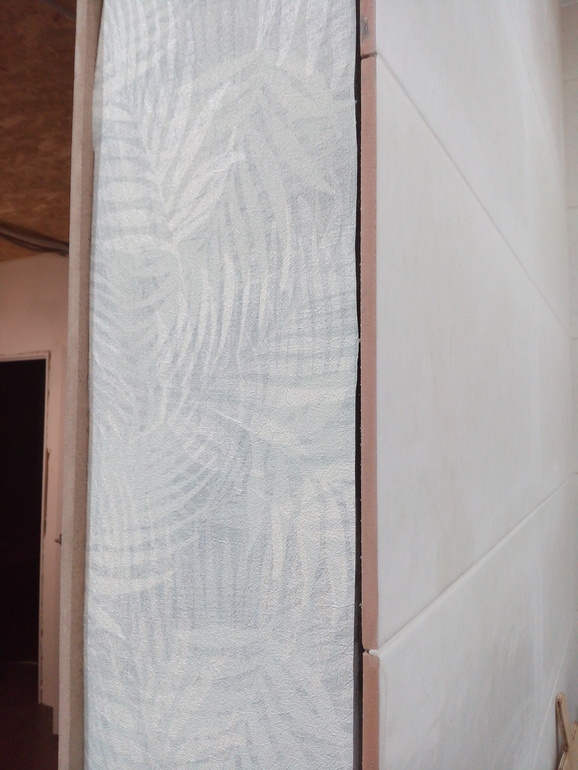 Интерьерное решение ванной комнатыСтык плитки и обоев, на левой половине этой узкой полоски обоев будет белый наличник, справа - надо решить. Покидайте, пожалуйста, варианты