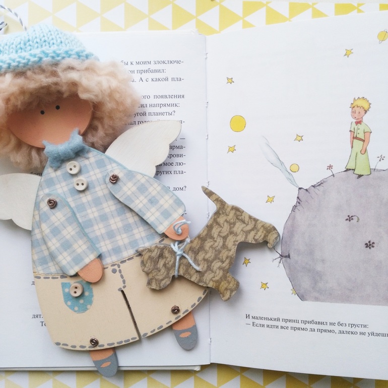 По многочисленным просьбам случилось сделать мальчика. Подвеску для декора детской мальчиша-кибальчиша. Но вышел он романтичным, больше похожим на Маленького принца.