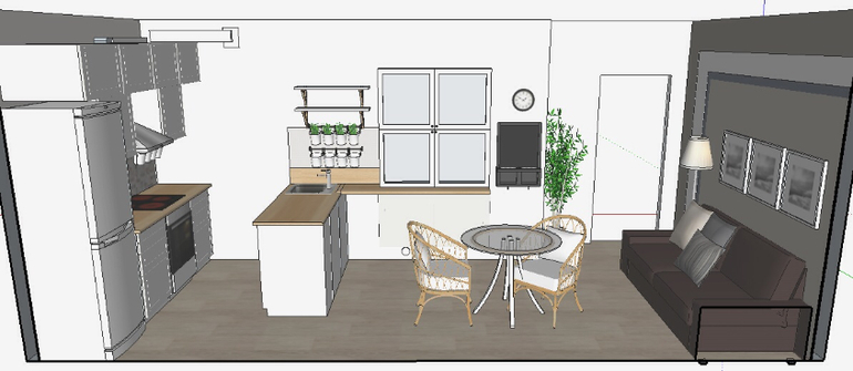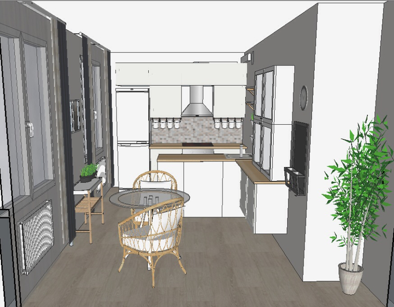 Откровенно сказать, у меня множество сомнений по данному проекту. Изначально для себя я отвергла расстановку кухни островком и в виде буквы П, склоняясь все же к стандартной угловой расстановке.Сейчас поясню почему.