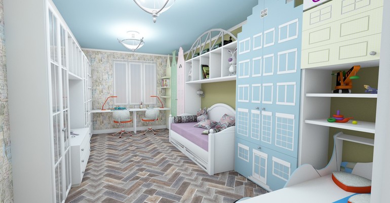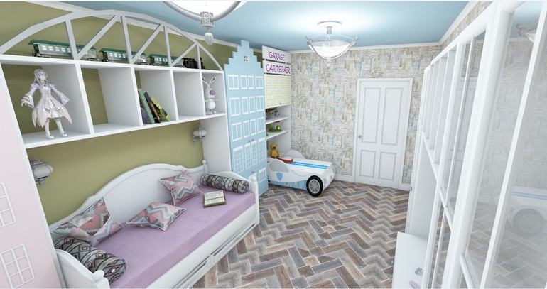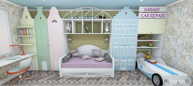 Некоторое время назад мне довелось сделать проект детской для участницы нашего сообщества. Детская планировалась для троих деток, причем кровать-машина должна была быть там непременно.) Далее прошу под кат :