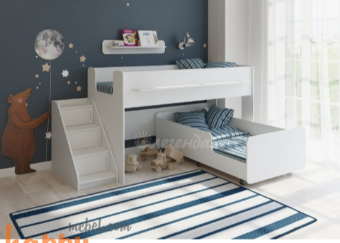 Выбор у меня пал на конкретную модель во первых из за того, что нижняя кровать выкатывается, а значит её можно переставить куда угодно и по сути является отдельным спальным местом, так же на нижней кровати есть бортики, так как у стандартных двухъярусных кроватей,как правило отсутствуют бортики на нижней кровати для меня это существенный плюс. Кровать не высокая, удобно мне застилать, убирать пока дети ещё маленькие и наверху так же высокие бортики ( у нам матрас 15см) конечно риск упасть есть, но минимальный. Ну и лестница