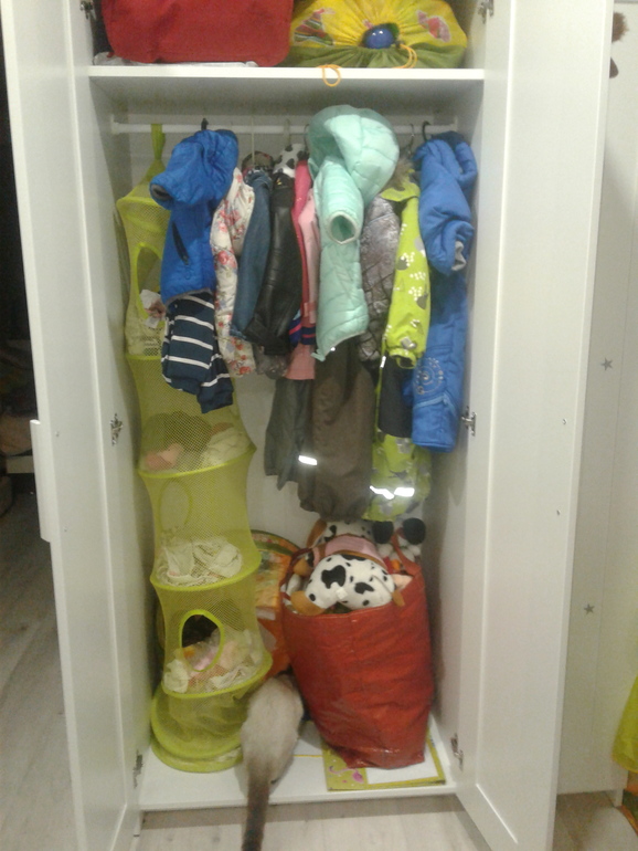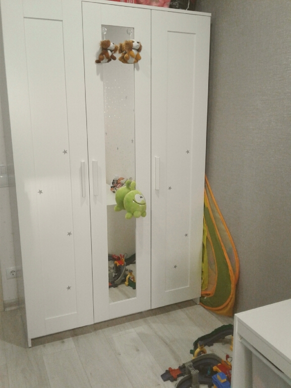 Слева у нас стоит стеллаж икеевский под игрушки и ещё пару ящиков, которые нельзя убирать, как сказала дочь)