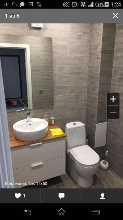 я с шершавым прям мучаюсь и цвет темный, прям жесть - разводы видны и мыть тяжело, приходится несколько раз перемывать . а этот у меня на кухне - одно удовольствие. И фото ванной в этом керамограните красивое! я бы сделала акцентную стену им, а остальное либо таким же светлым, чтобы контраст был, либо подобрала белый компаньон.