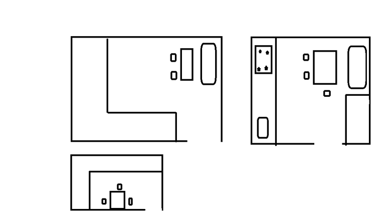У Вас хороший размер кухни. И не большая, но и не маленькая. Я бы сделала просто Г-образную кухню без выступа. Можно вход немного перенести, как на первом рисунке и удлинить рабочую поверхность. Можно, как на втором рисунке (нужно смотреть по размерам) перенести вход и поставить справа холодильник и колону с техникой. Можно, как на 3-м рисунке расположить гарнитур буквой П или Г под окном, но тогда мало места для полноценной обеденной зоны. Извините за примитивный рисунок.