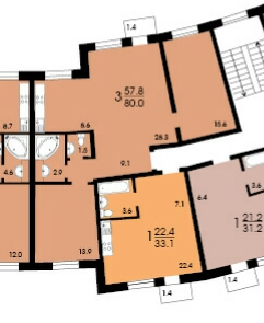 25 квартира:72,3м2, торцевая, детская комната над холлом подъезда, остальные комнаты над двушкой на первом этаже. Зато комнаты прямоугольные! И идет с сантехникой, что сэкономит и время и деньги на первых порах.