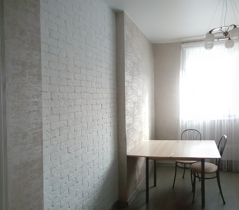 Стол и стулья временные. Кухня низ антрацит, верх белый.