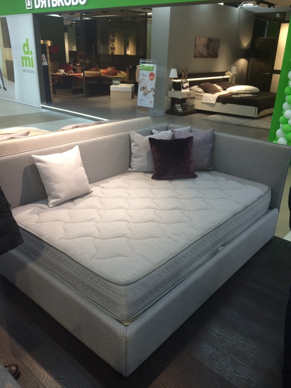 Это мой диван. Заказывала в таком виде, чтобы разбирать на ночь не нужно было, а днем можно использовать как диван. Именно поэтому мне обшивали матрас из ткани самого дивана