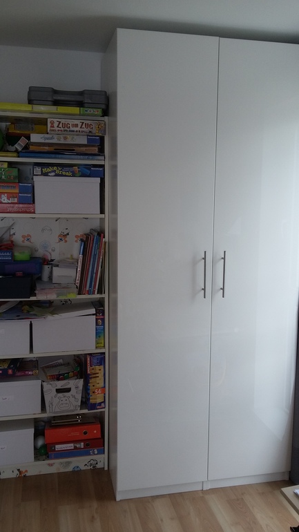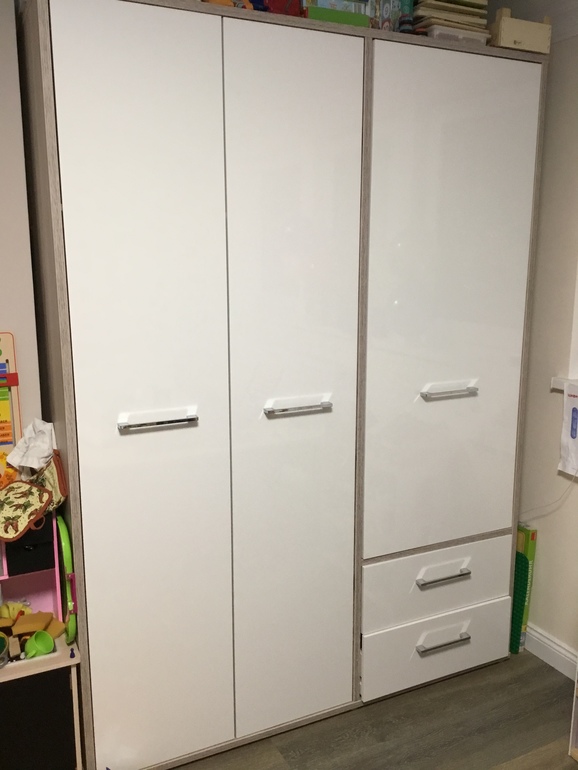 У нас икеа Пакс. Удобно. Сделала все как мне надо для двоих. Поставила дешевые белые двери, так как мелкий иногда рисует на стенах.