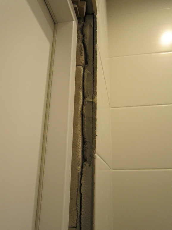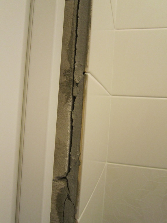 На этом наши мучения не закончились. в туалете при установке дверей нам не хватило доборов. и я стала замечать, что плитка отходит от стены над дверью, и справа от двери огромная трещина, он не прогрунтовал, зачем-то положил на огромный слой плиточного клея. а когда я предъявила ему претензии, сказал, ЭТО У ВАС ТАКАЯ СТЕНА.