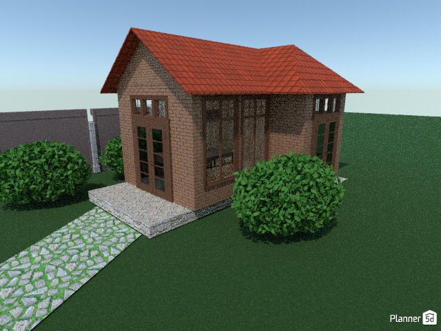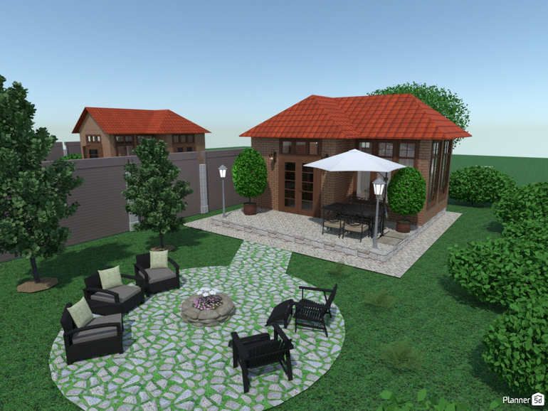 Но так не видно детской площадки и с террасы дома смотришь на тыльную сторону кухни, трубу дым от трубы может лететь на террасу из-за того что ближе к дому расположится.