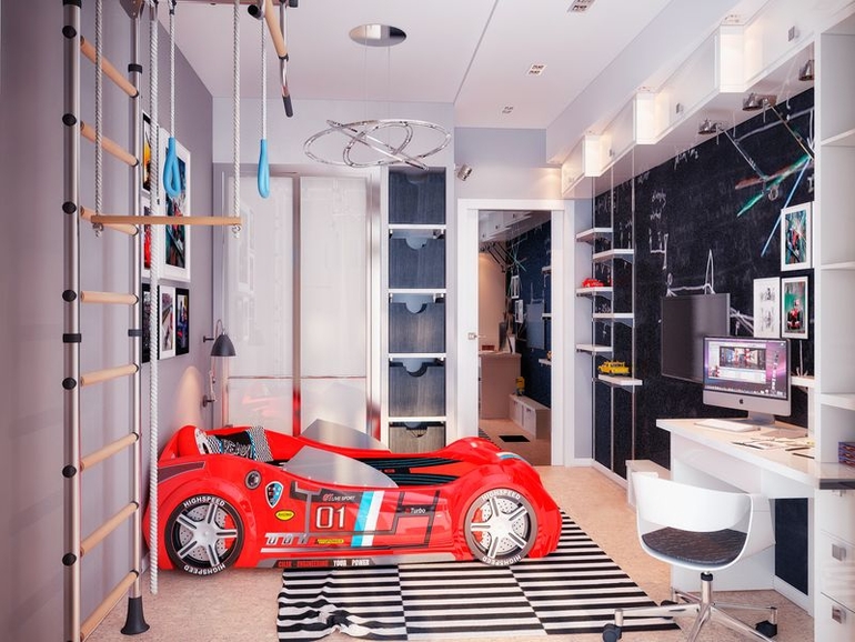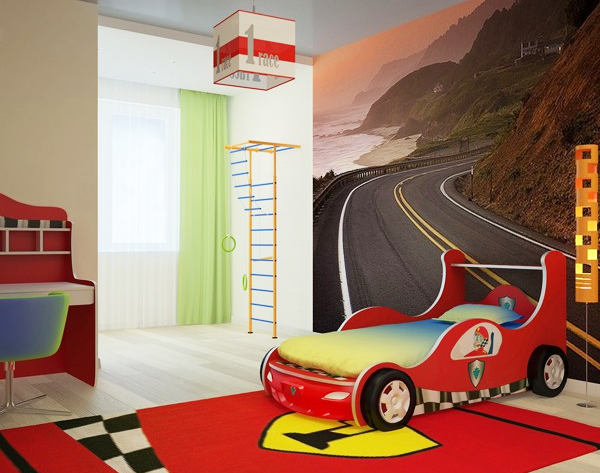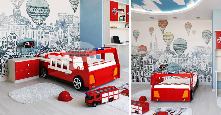 Вопросы и ответыДевочки, помогите советом, какую мебель и обои выбрать для детской, если имеется пока только кровать-машинка красного цвета. Я себе в мыслях рисовала такую нежную бело-голубую комнату, а сын выбрал ярко-красную кровать. И теперь я растерялась. Как этот красный цвет поддержать, но минимально. Мебель красную точно не хочу, это будет чересчур. И какие обои подобрать?
