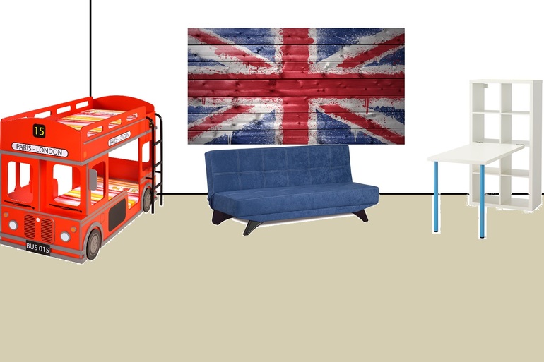 Двери белые будут, шкаф и стол тоже. Вам флаг, наверно не подойдёт, но можно постер какой-нибудь или картину повесить.