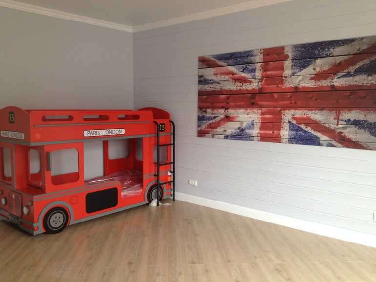 Скажите, пожалуйста, а как сделана эта стена с флагом? Какие-то планочки или это обои такие? Очень интересно смотрится!