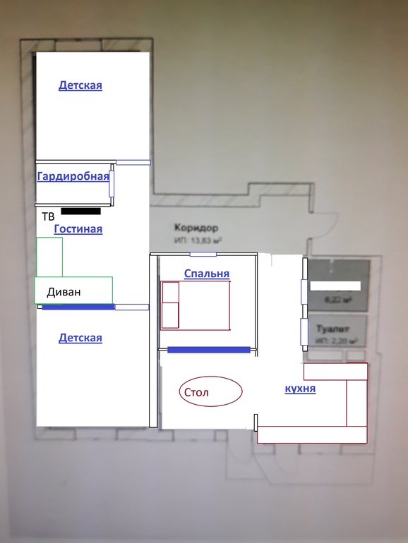 Мне 2 вариант нравится. Всем нормально по метрам. 6 с копейками детская это вообще мало очень