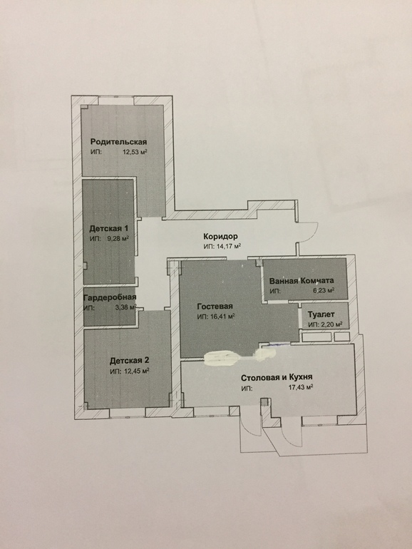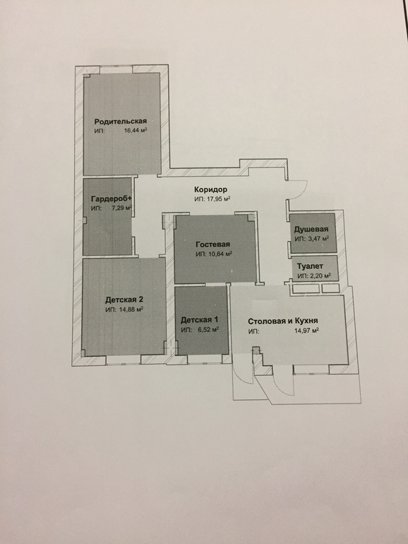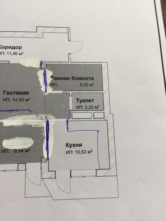 Не за что! Кухня больше, т.к. сама площадь квартиры больше, я об этом писала). Вот первоначальный план: