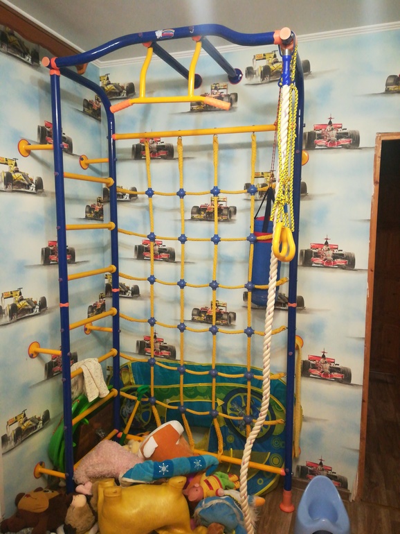 вот) только в углу игрушки не убрала. А вообще, уголок нравится, надёжный. Очень удобна прорезиненная шведская стенка.