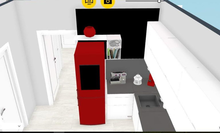 1) В кухне - интересует зона между холодильником и навесными шкафами (черные участки - это грифельная доска). В этой зоне у меня располагается кухонная машина, чайник и кофеварка.