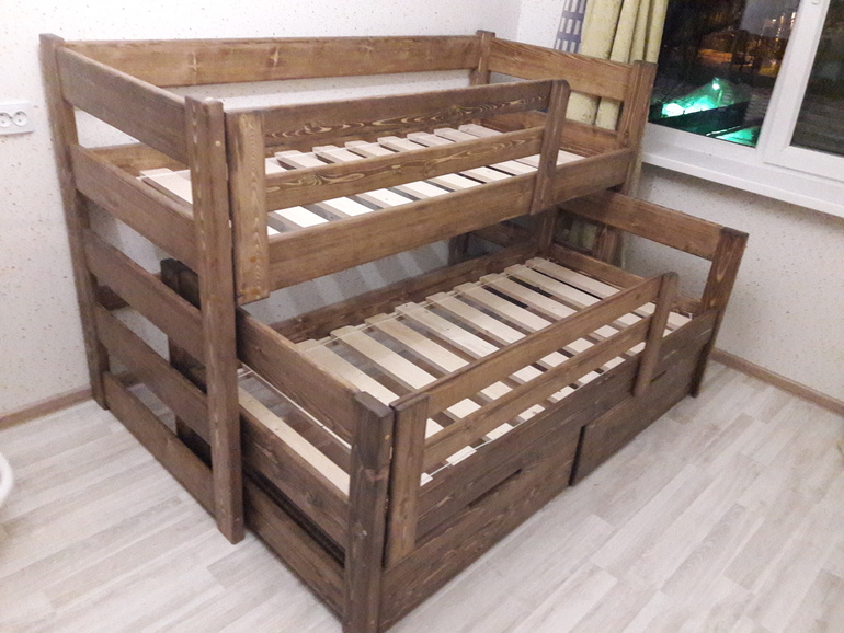 У нас такая кровать. Детям 5 и 6 лет. Двухярустные опасно в таком возрасте.
