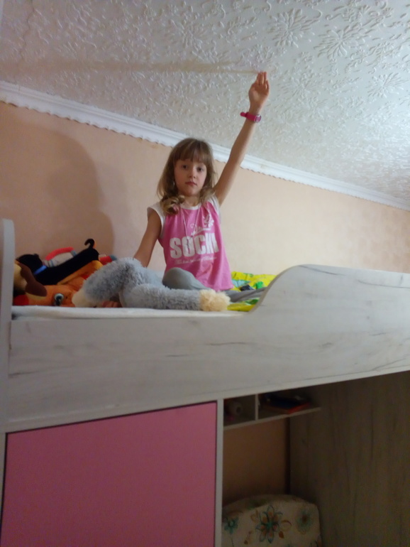 Комната маленькая, потолки 2,55 (спасибо прошлым владельцам насыпной пол и подвесной потолок). Квартира жаркая (ну это мне всегда жарко, многие у нас мерзнут). Дочка загорелась двухъярусной, думали над Артек: