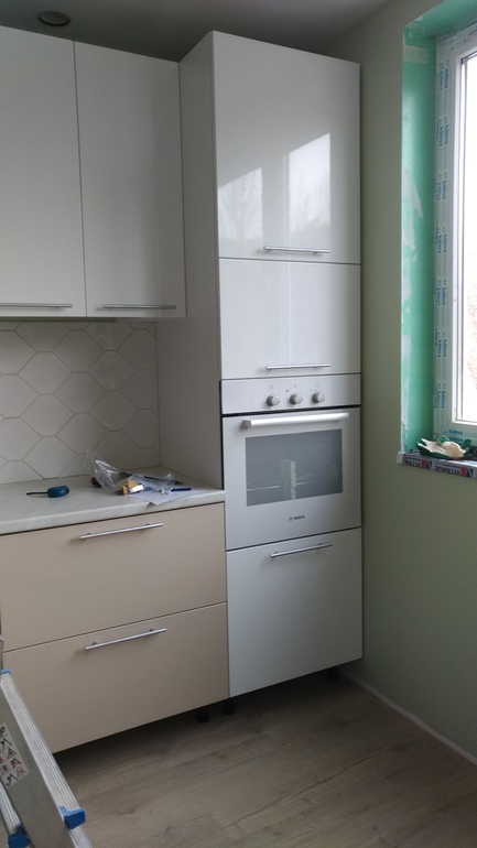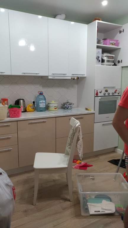 Поздравляю! Свежая, приятная кухня у Вас! А вообще кухня- это очень нервно..у нас трже со столешкой накосячили и с плинтусом и не только...скажите, а что за пятно у Вас на фасадах было? Я вот мыла свои на днях после установки( установщик тер их растворителем, чтоб отмыть клей от пленки и оставил стопятьсот разводов) и обнаружила пару несмываемых черных точек((((( издалека не видно, но я теперь о них знаю и меня это напрягает, думаю звонить нашему мебельщику, говорить об этом...это не царапины,не краска, такое чувство, что под пластиком что- то, абсолютно гладко на ощупь..