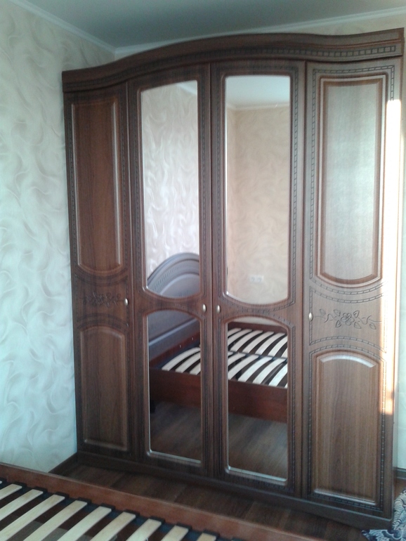У нас тумбочки шириной 45 см. Сейчас, по объективным причинам вообще они стоят не в спальне. А поставили стул у кровати. +детские кроватки.
