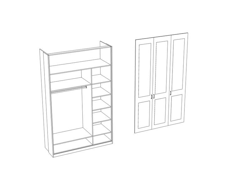 Выше пишут, что средней двери не на что будет крепиться. Перекладину слева от полочек надо до верха
