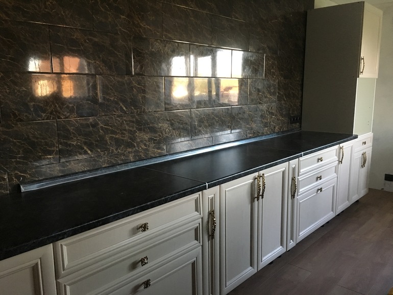 У нас эконом кухня, к сожалению, более дорогую пока не можем позволить. Но смотрится, мне кажется, достойно.