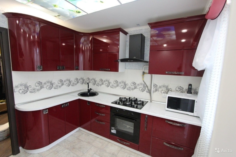 Интерьерное решение кухниПрошу вашей помощи...муж сказал искать кухню, но я не вижу даже что подойдет...в основном цвет черно-коричневый, пол - светлый, стол-коричневый, стулья - бордовые. Верхних шкафов не будет на самой длинной стороне, только слева для сушки