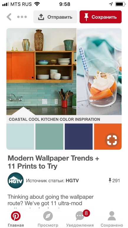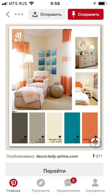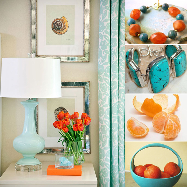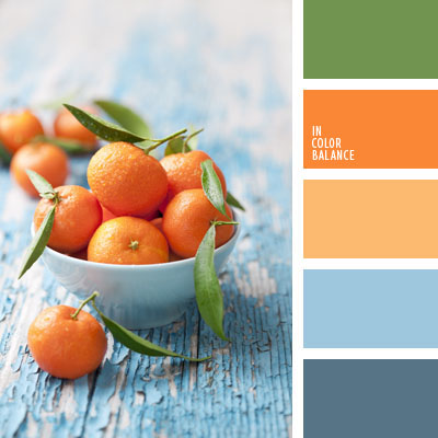Оранжевый + оттенки голубого (на примере не кухня, но принцип понятен)