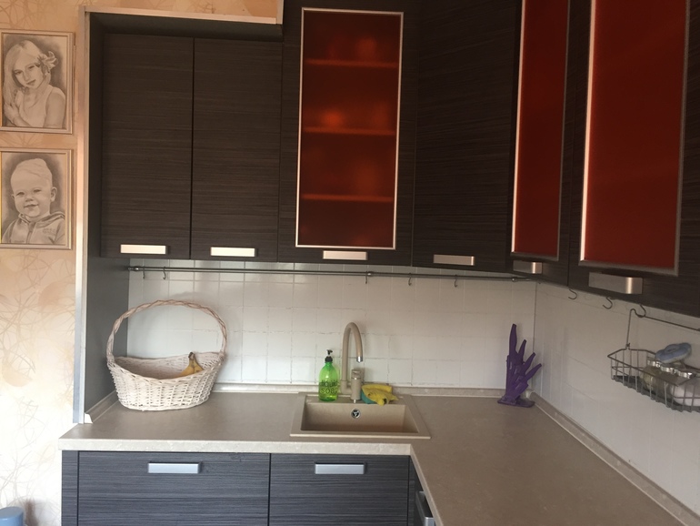 А что, есть с чем работать! Хороший гарнитур, мне нрпвится фартук, он нейтральный. Картины детей перевесить на большую стену.