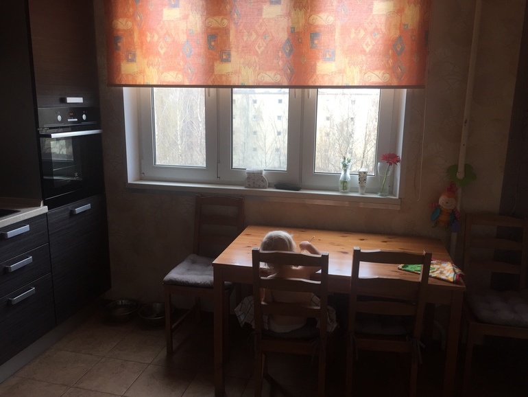 Откровенно говоря, больше всего меня смущает рулонка) освежила бы обои и более спокойную штору. Возможно яркие акценты в виде салфеток на стол или подушек на стулья. Сама кухня вполне неплохая