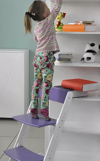 Я такой стул не стала покупать ребенку. Хотя и видела его не однократно. Мне кажется что упасть с него вполне возможно. Тем более что ребенок стоит на скользкой поверхности. Мне больше понравился регулируемый стул moll Maximo. Он удобней. Сиденье и спинка специальной формы, в меру мягкие. Идеально подходят для детей.