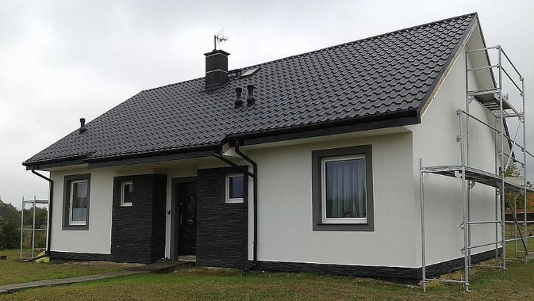 • Наружная отделка внешних стен: эластичная декоративная штукатурка Церизит, фактура «Короед» окрашенная по всей массе декоративного слоя (цвет по выбору), по ППС на армирующую пластиковую сетку.