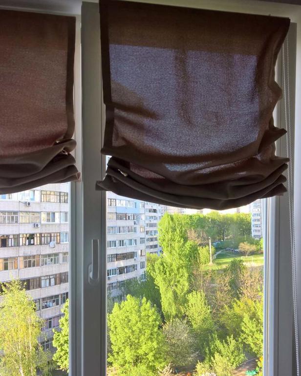Мне на все окно не нравится, поэтому у себя на кухне сделала на каждую створку отдельно и крепили именно на оконную раму.