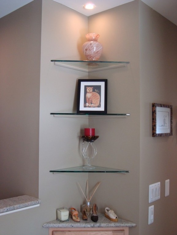 Открытые полки я бы сделала поменьше размером, тупее угол и количество уменьшить.