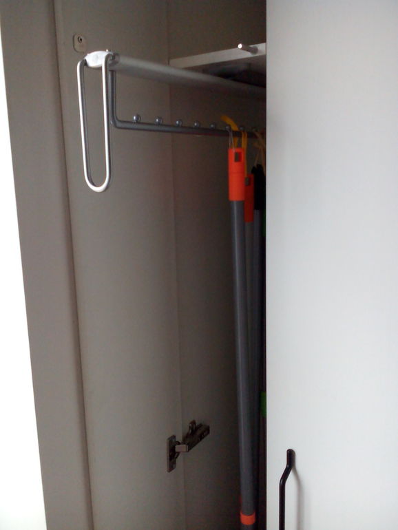 Простите, а сколько по Вашему должно быть швабр в доме, чтобы под них целую секцию в шкафу выделять надо?)))