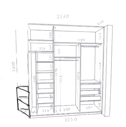 Интерьерное решение жилых помещений.Добрый день! Проектировщик нарисовал чертёж шкафа. Но что-то меня смущает... покритикуйте пожалуйста))) буду рада любым советам.
