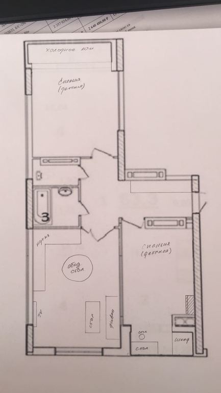 на трешку пока не тянем!у нас гостиная почти 19 кв,хотим туда перенести кухню и получится кухня+гостиная! а на месте старой кухни сделать спальню.Вообще в этом мало что понимаю,вот и приходится просить совета)))