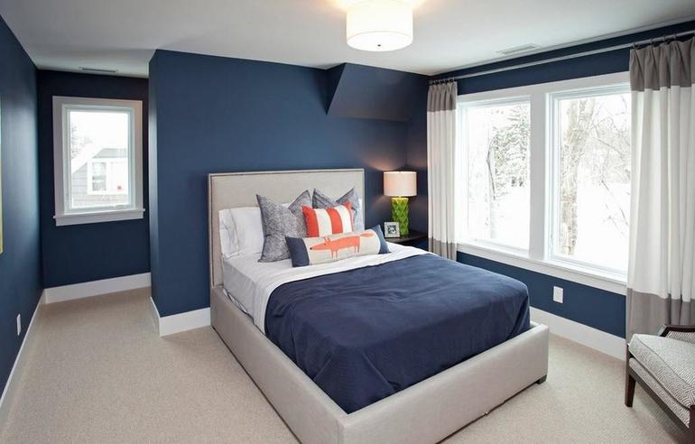 Мне кажется что синих оттенков в комнате уже достаточно, очень красиво!. Шторы лучше светлый беж . немного в серый оттенок и без рисунка.