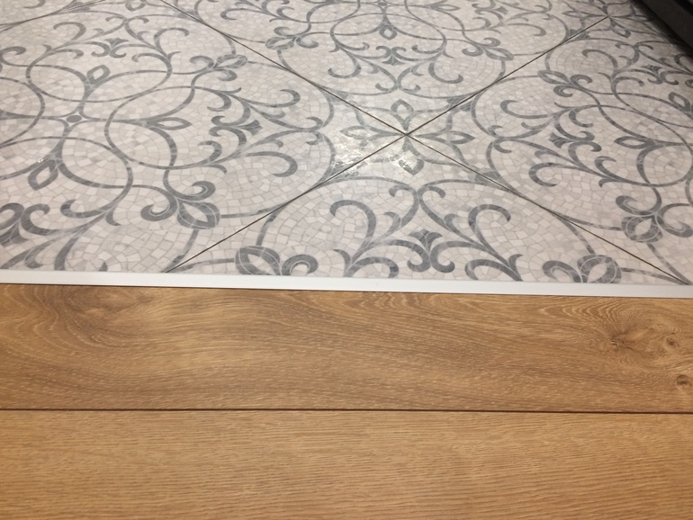Не все заказчики готовы на эти переходники и не все мастера умеют красиво состыковать плитку и ламинат ... и этот вопрос нужно хорошо заранее обсуждать.